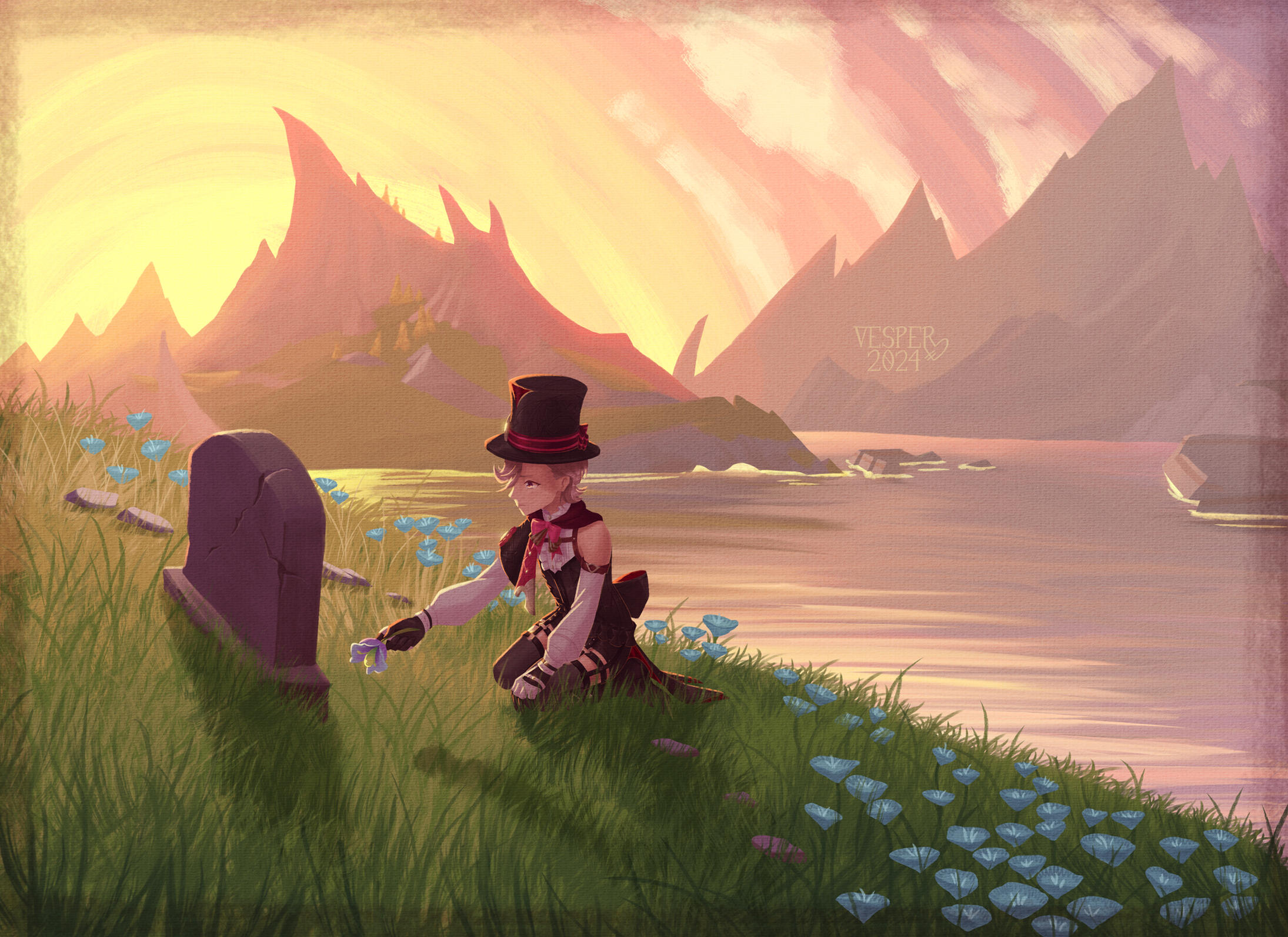 Scenes aren't my strong suit, but I'm willing to consider them at a higher cost. Usually, they require heavy use of reference images for the background, often with color picking directly from said references.Canvas texture optional. If you plan on printing the finished piece on a canvas, I can provide a version without it.