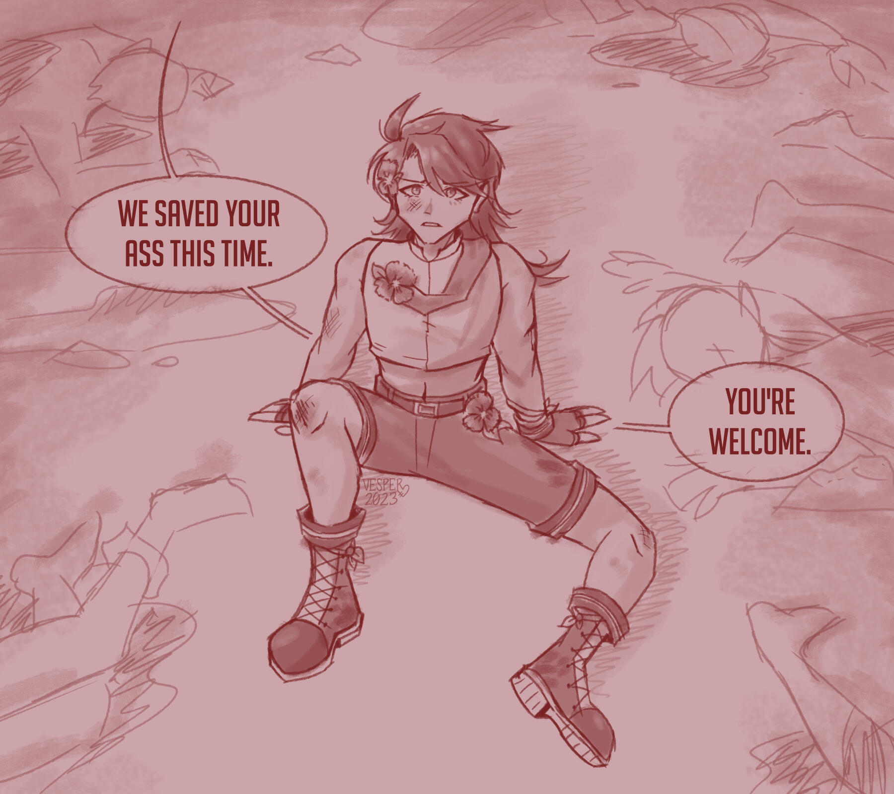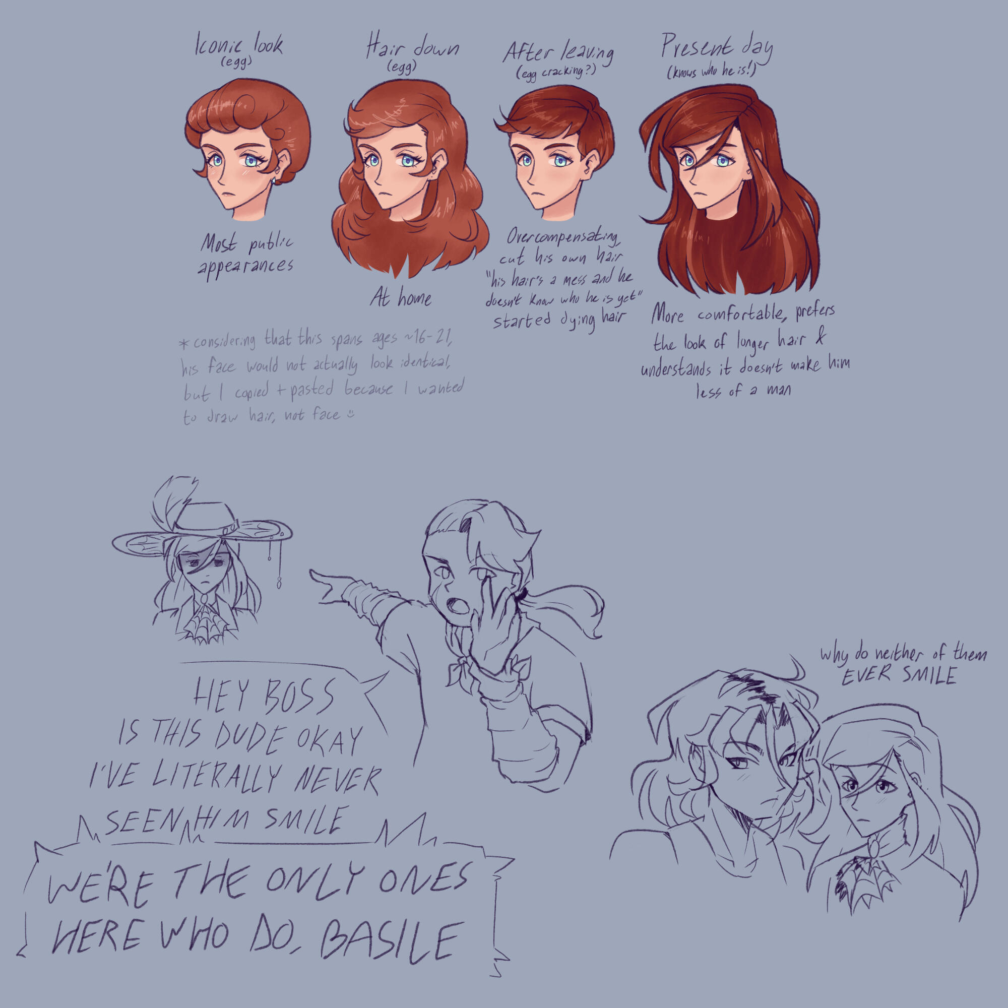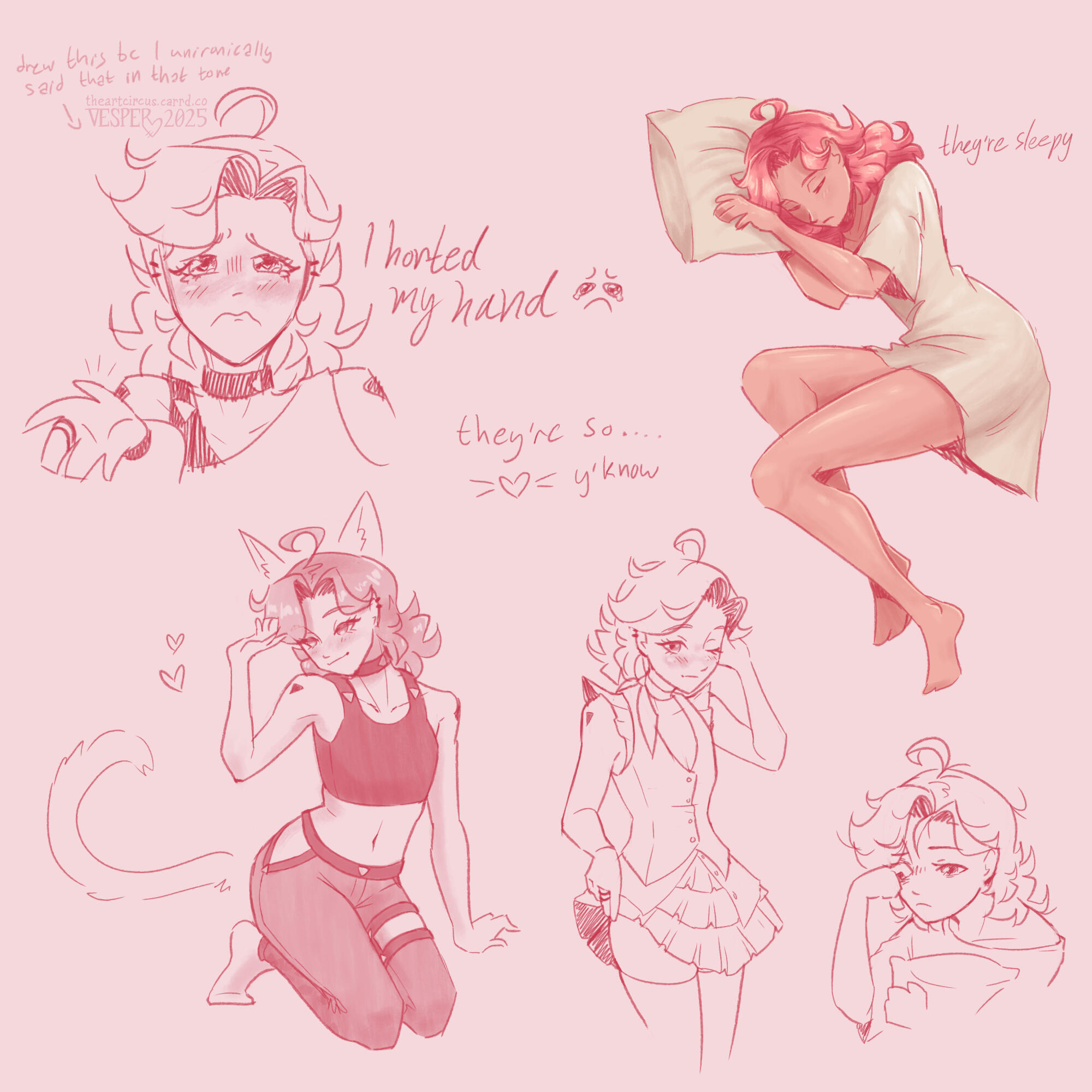 A canvas filled with doodles of your character, or characters.The quantity of doodles on the page depends on what you ask for, but the upper limit is 8.The art will not be as polished as the other options here. This is what I do for fun, and the quality will reflect that. Most doodles will not be colored and only some may include grayscale shading.You'll have to specify what you want me to do with this. I could do scenes from your story, memes, interactions between multiple characters, your character in different outfits or scenarios — the possibilities are numerous, though I work best with prompts that are humorous.Feel free to take inspiration from the examples.